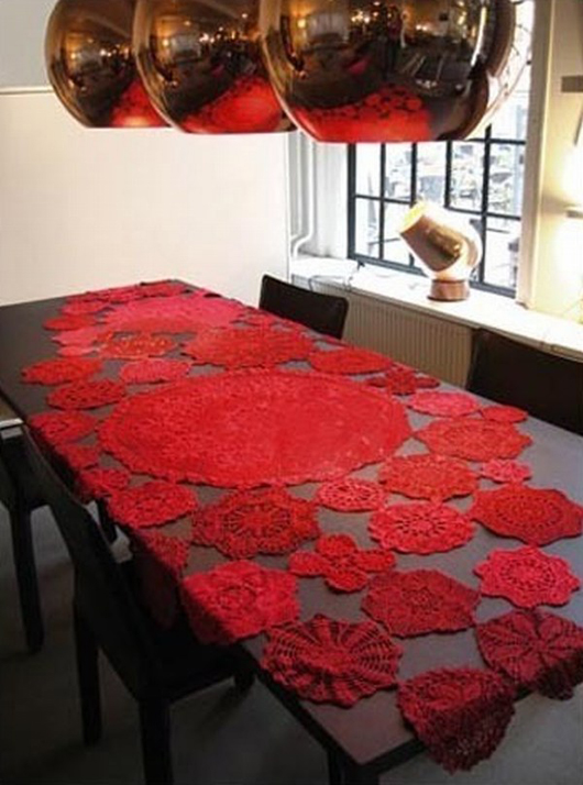 Que diriez-vous de changer un peu d’avis sur le napperon, cet élément ornemental généralement de dentelle ou de lin, utilisé pour être la pièce maîtresse de presque n’importe quelle maison il ya quelques décennies. Aujourd’hui, ils sont souvent considérés comme ringards et comme attrape poussière. Mais le napperon peut aussi être utilisé différemment, c’est ce que nous propose Marian Duijvestijn.