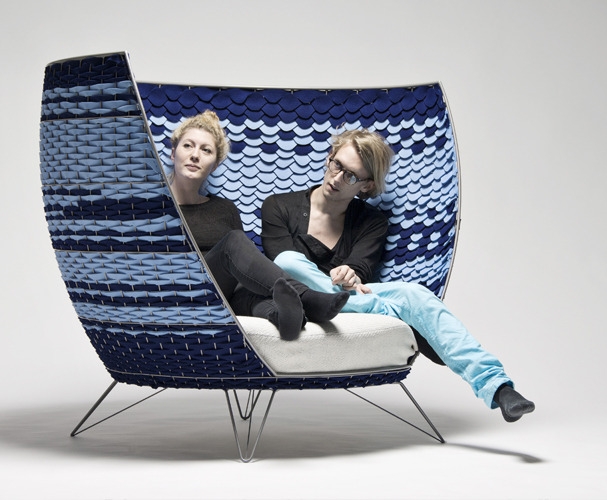 La suédoise Ola Gillgren nous offre une création atypique, La Big Basket Chair est un fauteuil cocon. Des lanières de feutres sont tressées sur la base d’un squelette de métal.