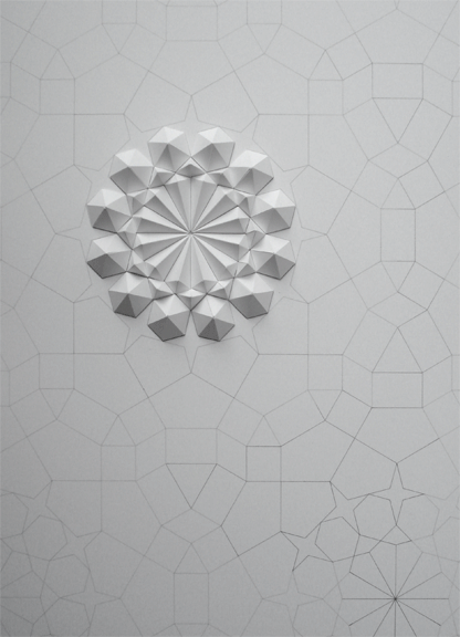 Voici un magnifique travail artistique qui sublime les motifs islamiques. Ces pliages en papier reprend les codes de l’art islamiques pour en faire des bas-reliefs à la fois complexe dans leur forme et sobre de part le blanc du papier.