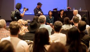 Amina Agueznay a ouvert la conférence. Elle a partagé avec le public sa longue expérience avec les maîtres artisans. Puis, Imane Bouchentouf a expliqué que l’artisan peut aussi être un artiste. Enfin, Jean François Clément a donné des définitions de « l’artiste », « l’artisan » et « l’artisan créateur ».