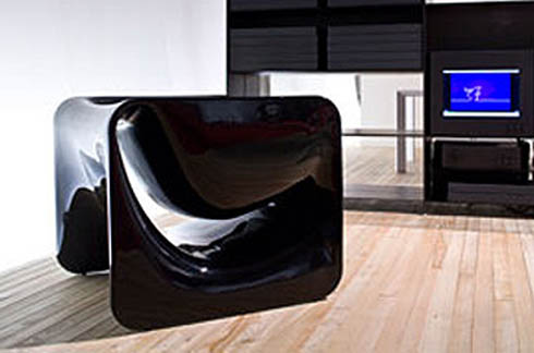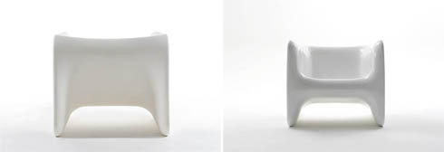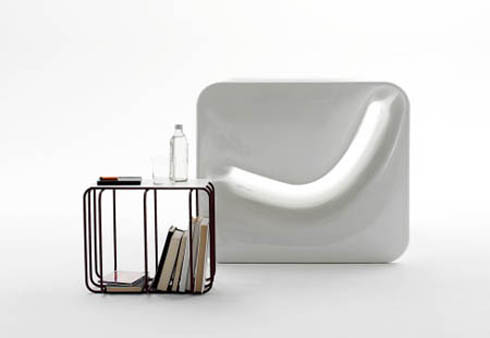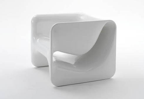 Ce fauteuil cubique créé par le designer Marco Acerbis joue entre une forme générale rigide, des lignes strictes et des courbes et des angles arrondis pour l’assise.