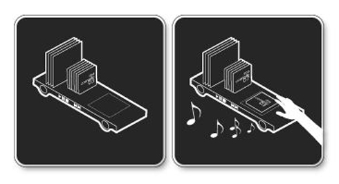 Waaz est une étagère. Cette étagère est aussi un dispositif de diffusion audio et de gestion des fichiers musicaux numériques (MP3) connecté à un ordinateur. Waaz est également une alternative aux logiciels de gestion et de lecture de fichiers numériques. L’interface de choix et de déclenchement de la musique est originale, il n’y en a pas. En effet, la présence de CD audio ou d’étiquettes spécifiques commande ou stoppe la lecture de la musique choisie, la commande c’est la pochette. La matérialisation de l’univers et de l’image de l’artiste est assurée par un support physique. Appareil ou mobilier, Chaîne hi-fi ou étagère, c’est un objet-interface qui comble l’écart entre la musique immatérielle et la musique stockée sur des supports physiques.