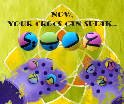 Hayan Maani, artiste pluridisciplinaire, à travaillé sur la décoration des chaussure « croc », et nous propose ses « arabic shoe charms« , une idée originale alliant customisation, calligraphie et design produit ! Un pari réussi !