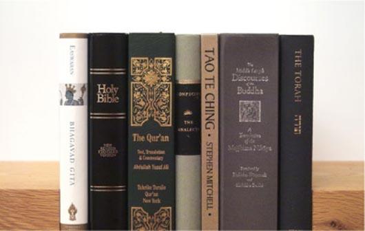 Juxtaposed : religion est une bibliothèque conçue pas Mike Evers et Maaike Simonian, du studio Mike & Maaike. C’est une création en série limitée, il n’en existe que 50.