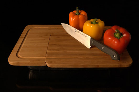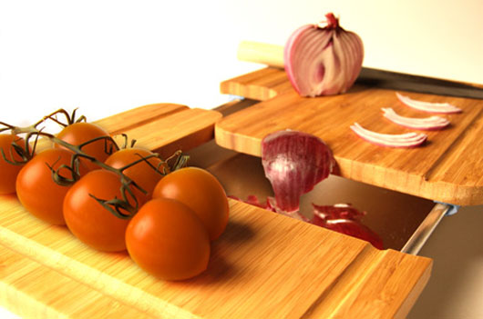 Le Bamboo Appetito a été conçu par le designer Joel Robert Axelrod. C’est une planche à découper visant à réinventer la préparation des aliments. Avec une planche à découper traditionnelle, vous devez balayer les déchets en dehors de la planche pour faire de la place pour continuer votre découpe.