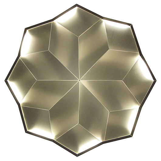Audi Radiant est un luminaire, une suspension en aluminium léger (le même matériau que celui utilisé pour l’Audi A2) créé par Rogier Sterk. C’est une immense lampe interactive (1,67 mètres de diamètre) faite de 16 formes de losange, qui reflètent les feuilles d’aluminium avec huit tubes fluorescents cachés dans les bords extérieurs de la lampe. Bien que la lampe soit symétrique, la lumière peut entrer et sortir dans de nombreuses directions et sous de nombreux angles. Par conséquent, la lumière est en perpétuelle mutation et en interaction avec les objets environnants.