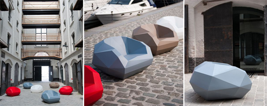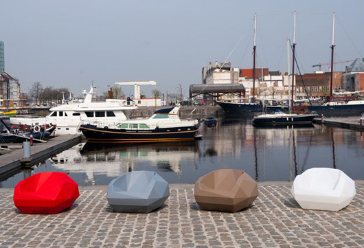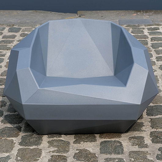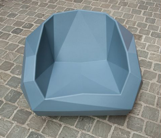 Réduisez les sections clés de l’ergonomie d’une chaise à une structure polygonale simplifiée et vous pourrez réduire le poids et le matériel ainsi qu’obtenir ce que Rainer Mutsch dit être « l’interprétation technique des formations rocheuses naturelles. » Rocking Chair substitue ses zones ergonomiques importante avec des surfaces planes et des triangles exacts. Fabriqué en plastique creux rotomoulé, la Rocking Chair est adaptée à un usage intérieur ou extérieur.