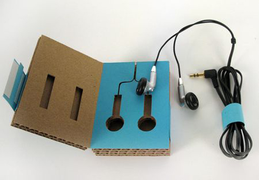 Dans la série des étudiants en design à l’UQAM, je vous présente aujourd’hui le travail d’Émilie Bertrand-Villemure, qui a travaillé sur le packaging de produits non périssables. Ces packagings sont en cartons ondulé, ce qui permet une protection suffisante pour le type de produits qu’elle a traité, ce qui permet donc de bannir le plastique lorsqu’il est totalement inutile.