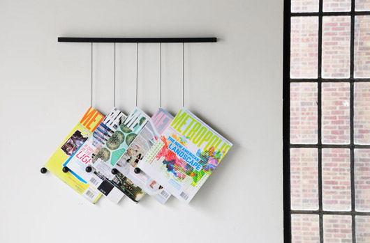 Le designer Isaac Yu Chen a proposé lors du workshop Innates Gestures un moyen très sympa de ranger ses revues. Ce workshop était destiné à revisiter les interactions entre l’homme et l’objet. Ici Isaac Yu Chen nous propose un tout nouveau porte revue, le Magazine Hanger, qui en plus de sa fonction première, devient un élément graphique de la pièce.