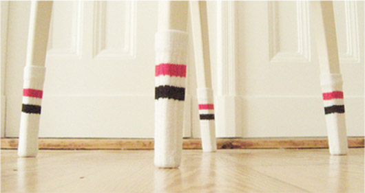 Le studio de design Chris & Ruby nous propose une façon très originale d’habiller nos meubles. En effet ces chaussettes, en plus de surprendre vos invités, et de décorer vos meubles, vous évite de coller sous chaque pieds de vos meubles l’éternel rond de feutre permettant de ne pas abîmer le parquet certes, mais que l’on retrouve avec le temps partout sauf sur le dit pied !