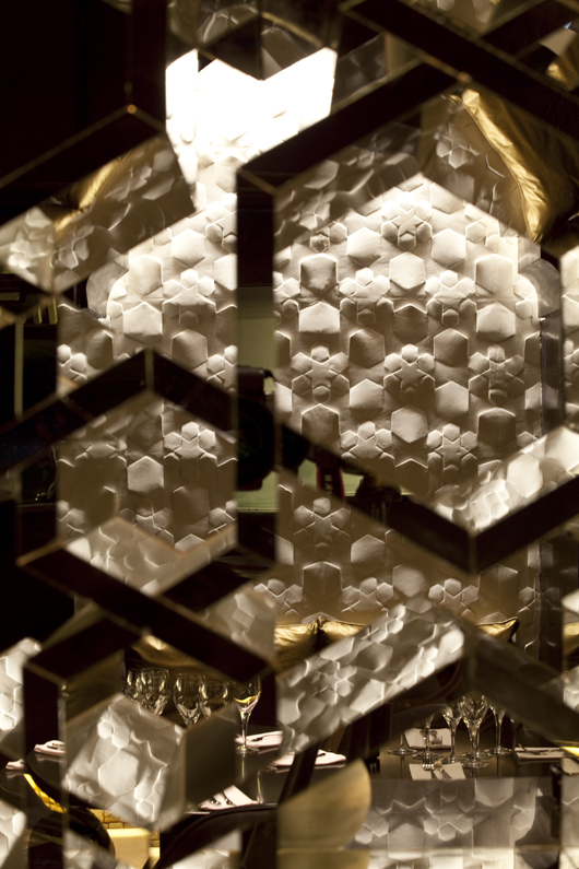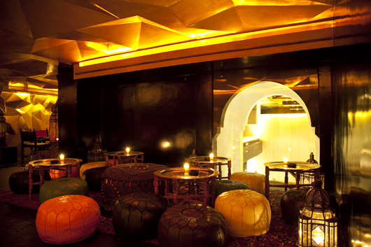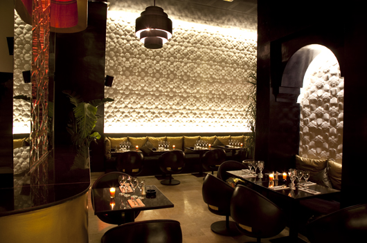 Le restaurant & club Azar a ouvert ses portes il y a un petit mois à Marrakech. Restaurant libanais au rez-de-chaussée, avec la possibilité de diner dans la mezzanine lounge, et bar au sous-sol où la programmation musicale est des plus éclectique. Le Azar a été conçu par le designer Younes Duret pour Marcel et Grégory Chiche, propriétaires du Comptoir Darna à Marrakech. Le trio a réussi un coup de maitre avec ce lieu. Younes Duret a souhaité créer une rupture avec ce qu’il peut exister à l’heure actuelle à Marrakech et plus globalement au Maroc. Il a voulu recréer la sensation que l’on peut avoir lorsqu’on se ballade dans la médina, où chaque croisement est une surprise, où chaque couleur, chaque odeur, chaque point lumineux nous attire et nous donne envie d’aller plus loin pour en voir plus. Précurseur du Néo-orientalisme, Younes Duret à traité chaque détail de manière à revisiter la tradition marocaine sans la dégrader. Il nous montre ici l’étendue de son talent. Je vous laisse en découvrir plus dans la suite avec de nombreuses photos.