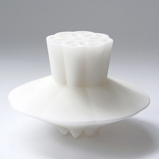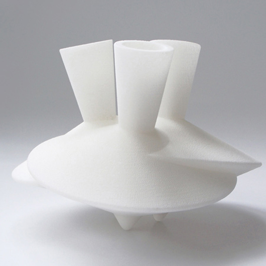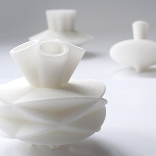La technique utilisée pour la production des vases est le frittage sélectif laser, technique basée sur la construction d’une forme, couche par couche, à partir d’un dessin sur ordinateur, dans le nylon.