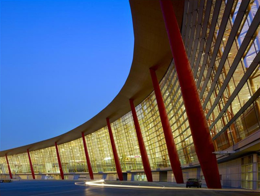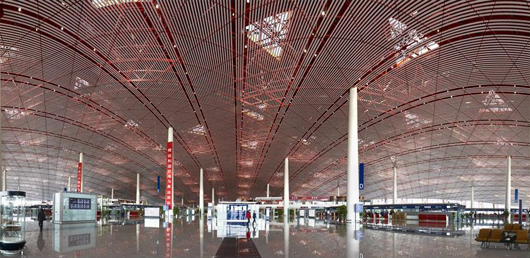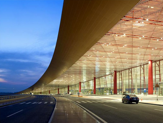 Le nouveau terminal international de Beijing est le plus grand et le plus avancé des bâtiments de l’aéroport et pas seulement technologiquement, mais aussi en termes d’expérience pour les passagers, d’efficacité opérationnelle et de viabilité. Achevé en 2008 dans le but d’être la porte d’entrée vers la ville pour les athlètes participant aux vingt-neuvièmes olympiades, il a été conçu par l’agence East China Architectural Design and Research Institute pour être accueillant et inspirant. Le toit aérodynamique et sa forme ressemblant à un dragon évoquent les couleurs et les symboles traditionnels chinois.