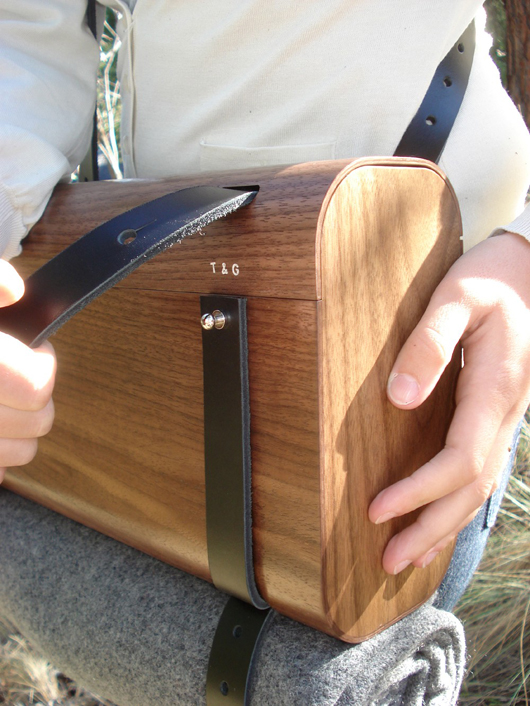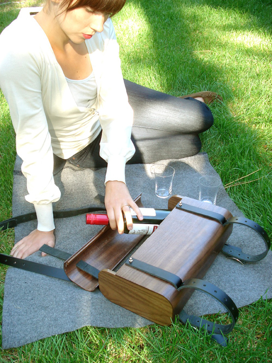 Aujourd’hui je vous présente un panier à piquenique réalisé artisanalement dans du bois de noyer. Le panier contient une couverture de laine maintenue par des lanières en cuir vous permettant de vous installer n’importe où, et est adapté à la taille standard d’une bouteille de vin de 750 ml. Il pourra vous accompagner dans la moindre de vos pérégrination.