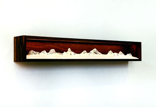 Inspiré par la vue sur les montagnes du North Shore que le studio Propellor Design peut admirer au quotidien par les fenêtres du bâtiment, Range invite à la contemplation de la nature. Sculpté dans le basalte et le gypse, logé dans une structure en noyer noir solide et éclairé par des Leds, ce luminaire original permet d’admirer les montagnes quand on n’a pas la chance de les voir par la fenêtre !