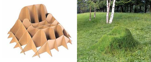 Terra Grass Armchair est un concept imaginé par le designer Nucleo. Totalement original et très simple Terra Grass armchair consiste en une structure en carton que l’on place dans son jardin, que l’on remplit de terre et de graines de gazon, et qui forme un véritable fauteuil en herbe ! Vous pourrez ainsi surprendre tous vos convives et voisins avec du mobilier de jardin totalement naturel et insolite !