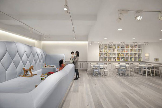 L’agence de design Nendo basée à Tokyo a récemment conçu le Tokyo Baby Cafe, un café à Aoyama pouvant accueillir les enfants. Ce café a été spécifiquement conçu pour que les parents puissent y emmener leur enfant, il y a des livres, beaucoup de jouets, une salle de jeux… L’idée a été de créer un intérieur qui joue sur les 2 principales tailles des personnes qui utilisent l’espace, en exagérant les échelles des objets, avec par exemple le canapé géant dans la salle de jeux.