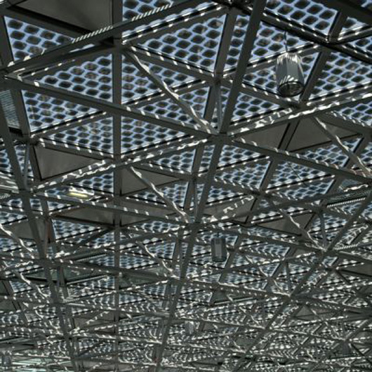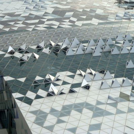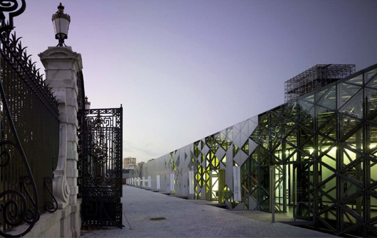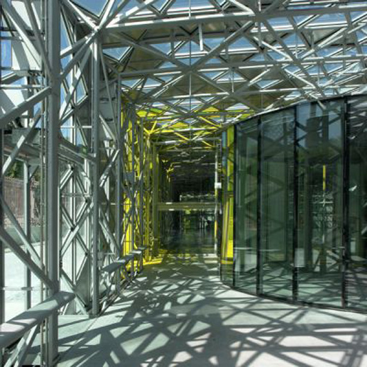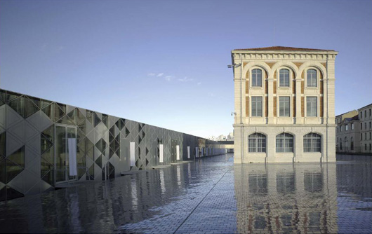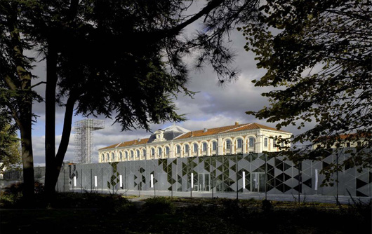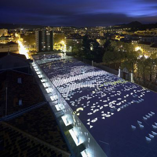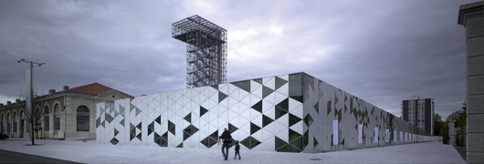 Saint-Étienne est en train de devenir une plateforme du design très influente. L’ancienne manufacture d’armes est devenue il y a quelques années La Cité du Design, et il y a quelques mois, devant l’ancienne manufacture royale, s’est installé, La Platine, un bâtiment de 192 mètres de long, 32 mètres de large et 6 mètres de haut, abritant un espace d’exposition et de documentations ayant pour sujet principal le Design. La Platine a été conçue par le studio LIN basé à Berlin. Le bâtiment est enveloppé de 14000 triangles de différents matériaux (aluminium, verre, panneaux photovoltaïques) qui reflètent les couleurs du ciel et permettent donc de modifier constamment son aspect.