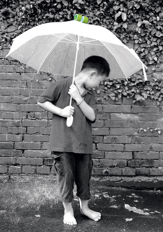 Wheel umbrella est un parapluie pour enfants conçu par Lin Cheng-Han, Chung Yu-Hsun, Cheng Yu-Ting et Chen Shaw-Chen. Sa particularité est qu’une fois qu’il ne pleut plus et que l’enfant le referme, il y a une roulette à son extrémité permettant de le tirer. De plus cette roulette laisse des petits smileys souriant derrière l’enfant. Le principe est que les smileys sont appliqués tout autour de la roulette, donc lorsque l’enfant traverse une flaque d’eau, le smiley se dessine au sol et s’efface ensuite en séchant.