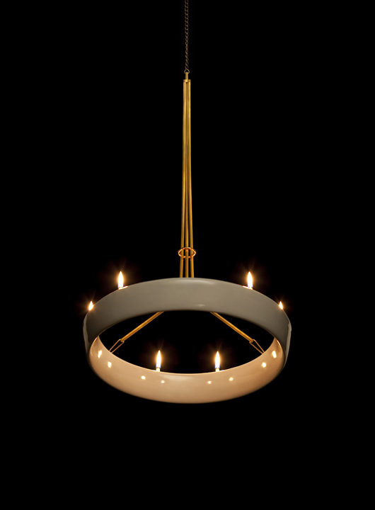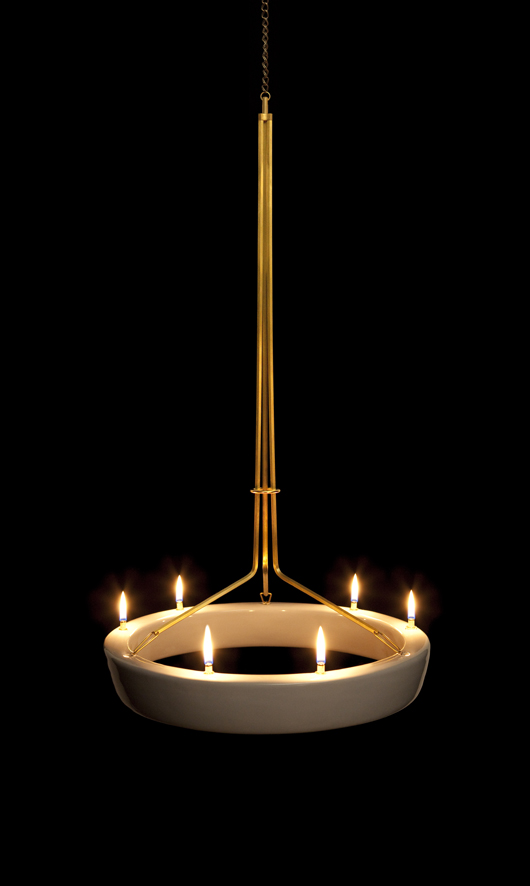 Le lustre Halo Chandelier conçu par le designer Piet Houtenbos est le mélange d’une esthétique très contemporaine et d’une vue d’ensemble plus classique et traditionnelle. Il est fait d’un anneau en céramique éclairé par six flammes. Il peut fonctionner en ajoutant de l’huile pour bougies et éclairer la pièce pendant 20 heures avant de changer les bougies.
