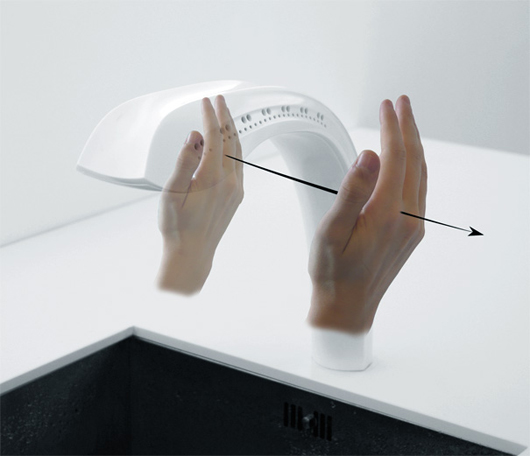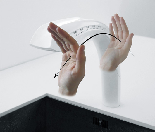 Le designer Jasper Dekker a conçu un robinet interactif pour la cuisine. Pour faire fonctionner ce robinet il suffit d’intéragir avec lui. De simples mouvements de la main permettent de régler et de contrôler le débit de l’eau, sa température, et le type de jet d’eau. Ce concept pourrait parfaitement remplacer tous les robinets de nos cuisines, c’est très pratique, étant donné que lorsque l’on cuisine on a souvent les mains grasses et du mal à ouvrir les robinets traditionnels !