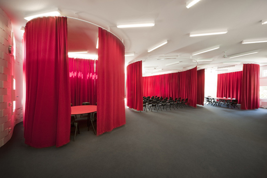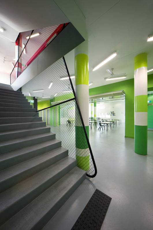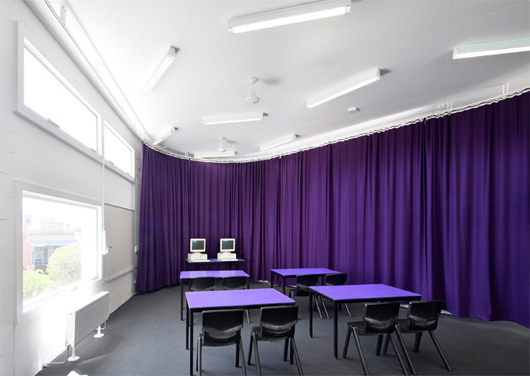 Le lycée Fitzroy, situé à Melbourne, en Australie a été conçu par l’australien McBride Charles Ryan. Il a réalisé une façade tout en ondulations peintes en bandes de couleurs qui se marient parfaitement avec le paysage urbain tout en se démarquant. Chaque espace intérieur du lycée devait pouvoir être totalement flexible, aussi McBride Charles Ryan a choisi d’utiliser des rideaux et des zones colorées afin de délimiter les espaces.