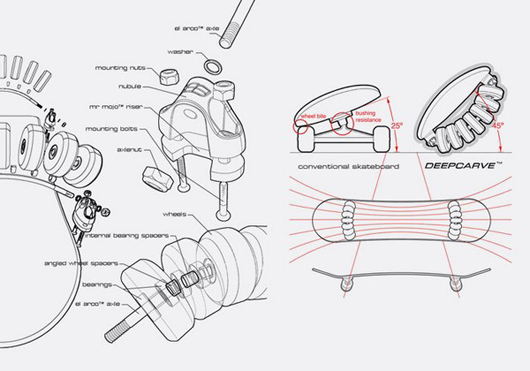 La planche de skate Flowlab permet de surfer sans vague et de rider sans neige. FlowLab est munie de 14 roulettes permettant d’incliner la planche à 45° comme sur un snow ou un surf. Ce skate a été conçu par Mike Simonian et Pieter Schoten. Ils voulaient un moyen de rider dans les rues de San Francisco, maintenant c’est possible !