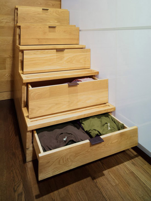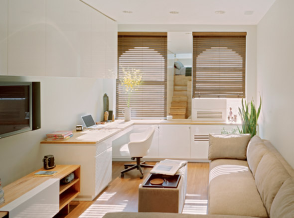 Économie, fonctionnalité et vie privée ont été les principaux moteurs de la conception du studio/bureau East Village conçu par l’agence Jordan Parnass Digital. Cet appartement est des plus efficaces. Chaque cm² a été optimisé au maximum, et rend une fonctionnalité parfaite. Personnellement je suis fan de l’escalier-rangement !