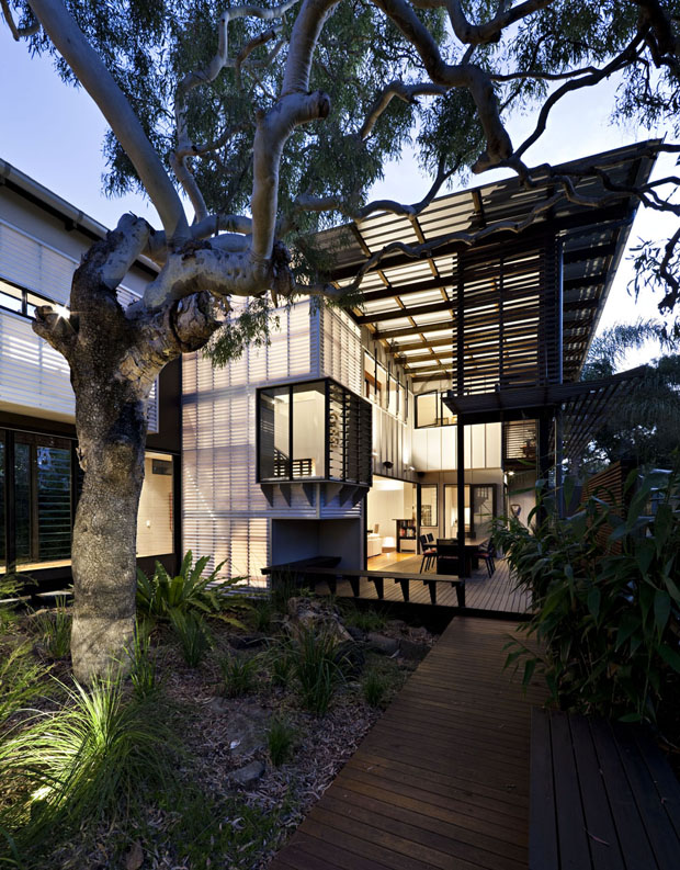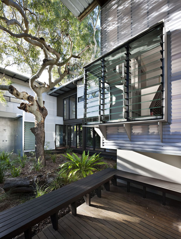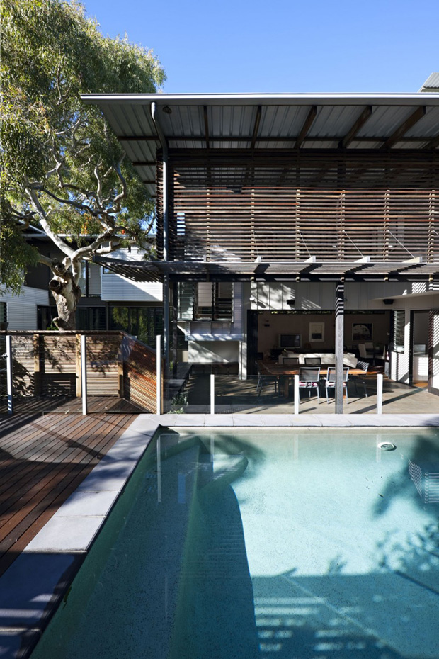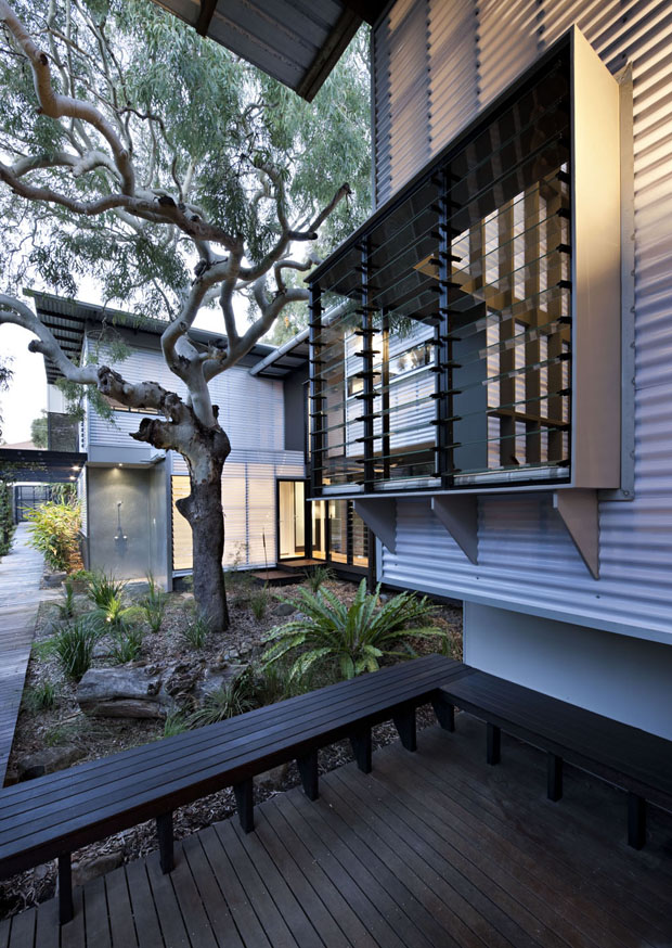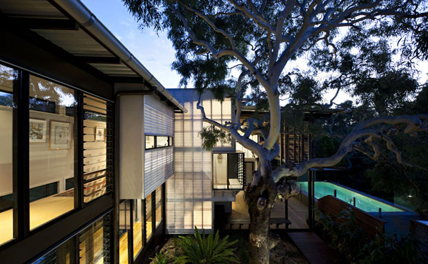 La Marcus Beach House est un projet de 260 m² réalisé par l’agence Bark Architects et situé en Australie. Les architectes ont réalisé un très gros travail d’aménagement sur cette maison puisqu’il y a une réelle harmonie entre l’intérieur et l’extérieur. Grâce à de nombreuses baies vitrées l’habitant cohabite totalement avec la nature.