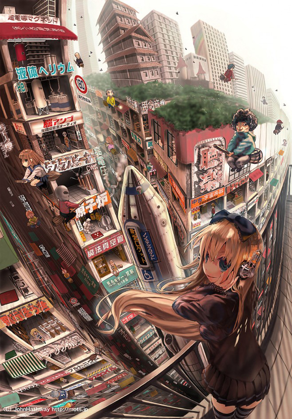 John Hathway est un passionné de sciences, de technologie, d’image et d’illustration. Il est diplômé en génie physique de l’Université de Tokyo. Il a créé son propre univers mêlé de manga, de 3D, et d’angles de vue plutôt surprenants. Je vous laisse découvrir une sélection de ses œuvres dans la suite.