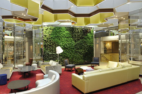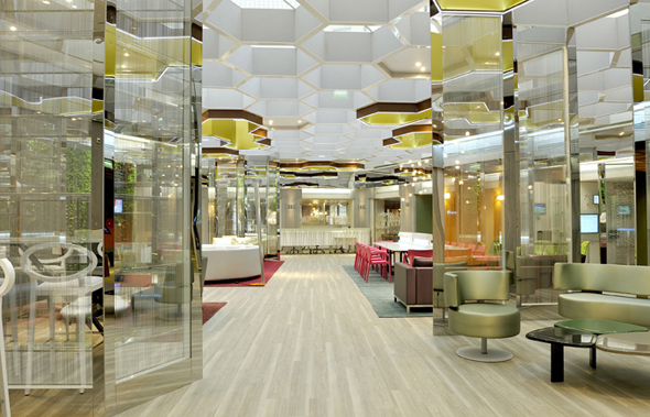 J’ai visité la banque . C’est un projet prestigieux et le plus impressionant sont les tapis en feutre brode de NATURTEX