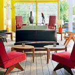 Plusieurs des pièces sont des originaux créés dans le milieu des années 1950, lorsque Pierre Jeanneret est allé en Inde pour aider son cousin, Le Corbusier, qui créait une audacieuse nouvelle ville, Chandigarh dans le Penjab. Là, ils ont conçu de nouveaux meubles en bois de rose et en teck qu’ils ont construit grâce à des artisans locaux.