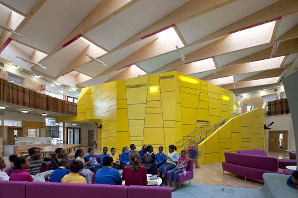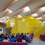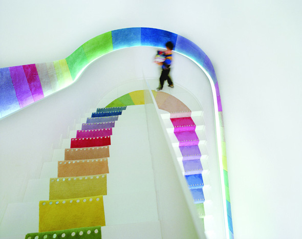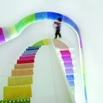 L’installation comprend une plate-forme triangulaire multicolore, un bac à sable en caoutchouc bleu vif, des gradins multicolores et un trottoir peint. Il n’était pas prévu à l’origine comme espace de jeux pour enfants, mais les enfants l’ont défini comme tel, surprenant à la fois l’artiste et le conservatoire. La leçon que nous pouvons en tirer, c’est que si nous pointons nos ressources dans la bonne direction, le résultat peut être infiniment amusant et enrichissant pour tout le monde.