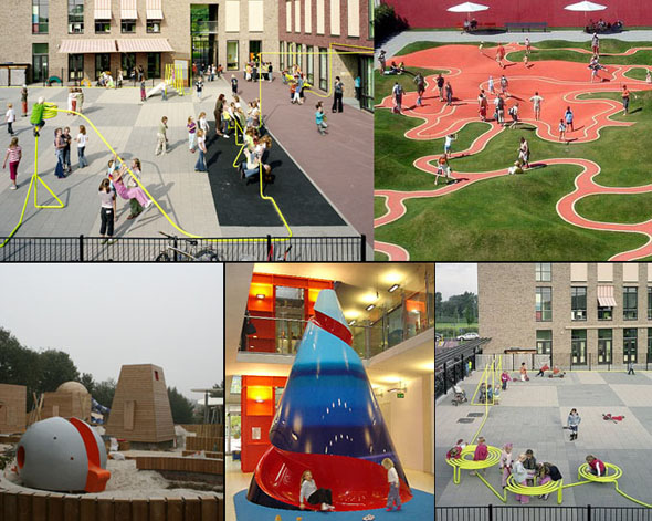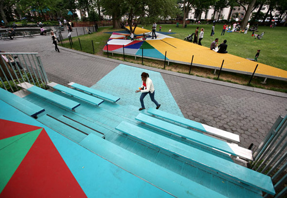 Il y en a de merveilleux exemples, comme le parc pour enfants au Madison Square Park à New York. Il s’agit d’une installation d’art par l’artiste Jessica Stockholder, commandé par le conservatoire du Madison Square Park.