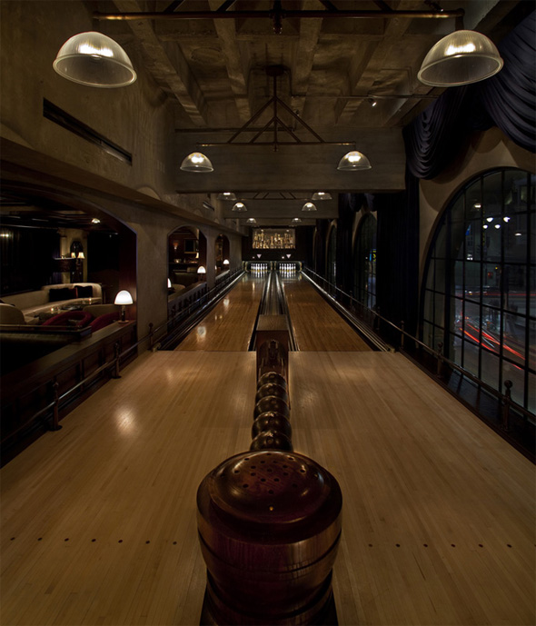 En général les salles de bowling sont loin d’être des endroits chics. Pourtant, sur la mezzanine du Roosevelt Hotel d’Hollywood, une salle de bowling a été nouvellement ouverte, la Spare Room, et elle est réellement classe. L’espace a été conçu par l’agence de design Studio Collective basée à Los Angeles.