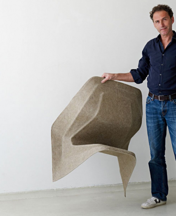 Lors de l’exposition Poetry Happens dans le quartier Ventura Lambrate, à Milan, Werner Aisslinger a présenté le premier concept d’une chaise monobloc en fibres naturelles -un projet soutenu par la société allemande BASF. Hemp Chair a été conçu pour un procédé de fabrication légère provenant de l’industrie automobile: les matières premières renouvelables : le chanvre et le kenaf sont compressés avec un liant à base d’eau thermodurcissable pour former un composite écologique, léger et pourtant solide.