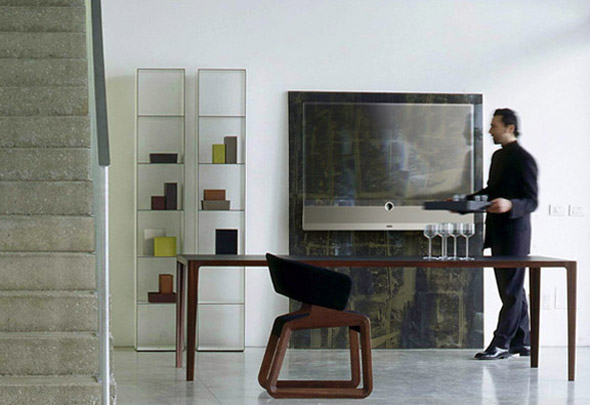 La société Loewe nous propose une grande innovation en termes de téléviseur: Invisio. Comme son nom l’indique ce téléviseur devient quasi invisible lorsqu’il est éteint. Grâce à la technologie Led et à l’affichage Toled, le designer Michael Friebe a réussi à transformer une simple vitre en téléviseur !