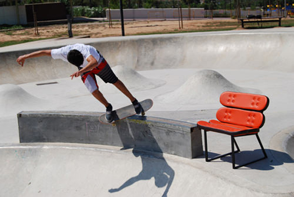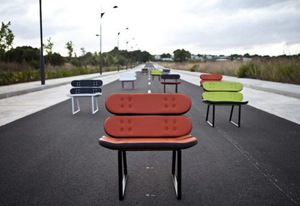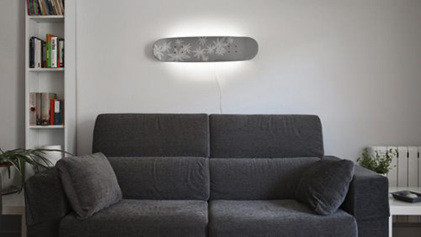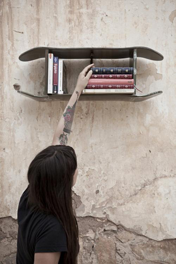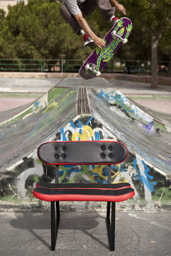 Manuel Llorens, architecte technique de formation et passionné de Skateboard a créé avec sa femme, décoratrice d’intérieur, la société Skate-Home. Cette société propose toutes sortes de meubles : fauteuils, bancs, étagères, bibliothèque… réalisés à partir de planches à roulettes. Découvrez une sélection de meubles dans la suite.