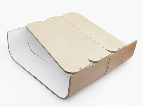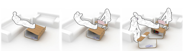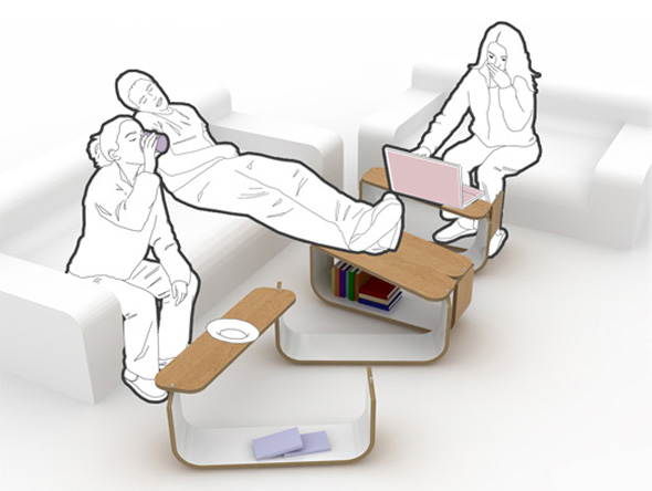 Le studio de design espagnol Cruxflux est à l’origine de ce concept. Il s’agit d’une table basse modulable et flexible qui peut se déployer selon les besoins. Les positions que peut adopter cette table sont donc quasiment illimitées grâce à un système de rotation situé à l’extrémité de chaque plateau.