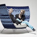 La suédoise Ola Gillgren nous offre une création atypique, La Big Basket Chair est un fauteuil cocon. Des lanières de feutres sont tressées sur la base d’un squelette de métal.