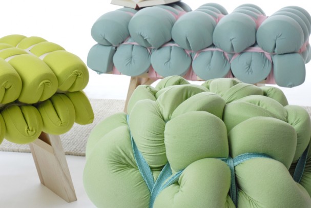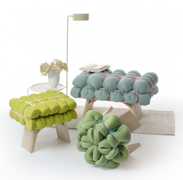 Coup de coeur pour ce mobilier en mousse interprété par le designer Allemand Meike Harde. Du bois, de la mousse, et des élastiques, c’est tout ce que Meike Harde a besoin pour créer ces formes uniques.