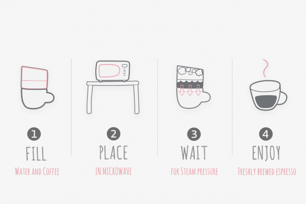 Cette simple tasse permet de vous préparer un espresso facilement juste en utilisant la pression générée par la vapeur d’eau se trouvant dans la tasse. Pratique et simple, il ne vous sera plus nécessaire d’utiliser des machines bruyantes à capsules d’une marque spécifique.
