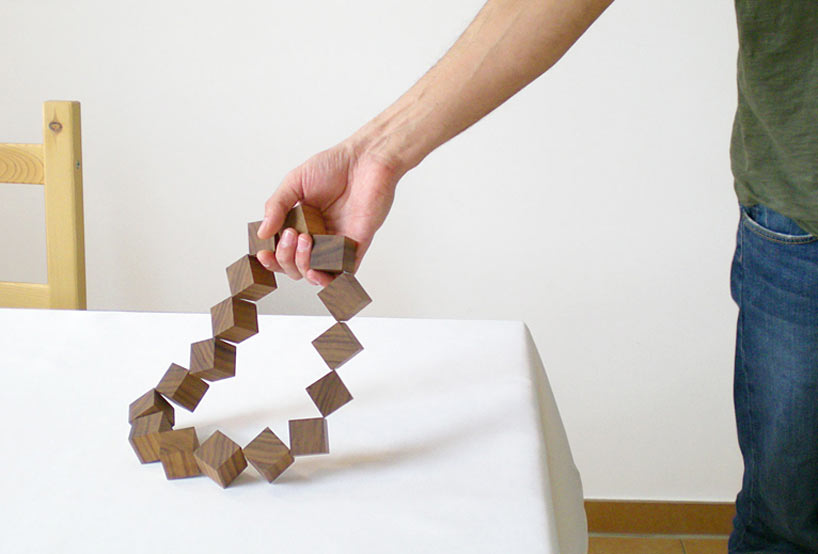Le studio DEWADESIGN fondé par Dewa Bleisinger, jeune designer allemand basé du côté de Berlin, nous présente sa dernière création du nom de ‘QUAD Trivet’. Derrière ce nom barbare se cache un dessous de plat ingénieux à dimensions variables. Une conception reposant sur l’association de 16 cubes de bois, érable ou noyer, reliés par une bande de silicone, l’utilisateur peut alors à sa guise décider de la forme que prendre l’objet.