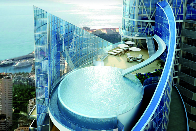 Construite par l’architecte monégasque Alexandre Giraldi, la Tour Odéon ouvrira ses portes fin 2014 à Monaco. Elle abrite à son sommet l’appartement le plus cher du monde : un penthouse de 3 300 m2 répartis sur 5 étages. Offrant une vue imprenable sur la Méditerranée et un accès à une piscine extérieure privée, ce penthouse culmine à plus de 150m de hauteur et coûte la modique somme de 300 millions d’euros, soit 91 000 le m2. On se demande qui sera l’heureux propriétaire de ce somptueux appartement coiffant les 49 étages de la tour.