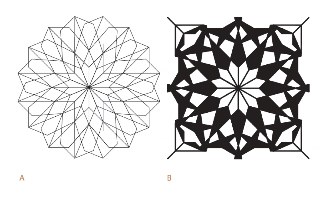 Tout part du motif, riche, plein, délicat, lui même saturé à l’infini, trituré, retravaillé pour arriver finalement à la forme la plus simple d’expression.