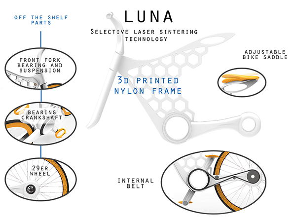 Luna est pensée et conçue entièrement grâce à la technique incroyable de l’imprimante 3D. Elle a été pensée pour une efficacité maximale et surtout un souci économique.