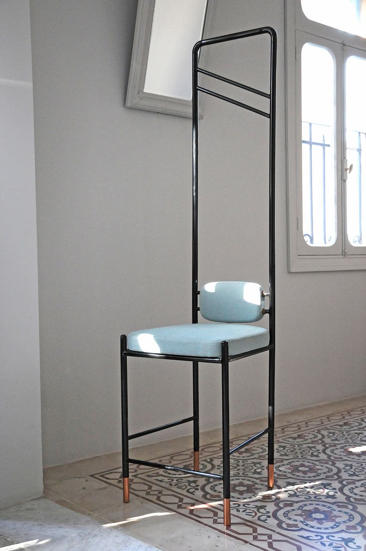 Dans la collection de mobilier connue sous le nom de Tessa, les tabourets, les chaises hautes aux lignes droites, géométriques font échos à la chaise à haut dossier de Mackintosh. Cette collection révèle une écriture élégante faite de proportions singulières et sublimées par le choix de matériaux nobles. Ainsi, cuivre, marbre, céramique, métal et verre s’associent et se combinent grâce à un travail soigné qui a le souci du détail.