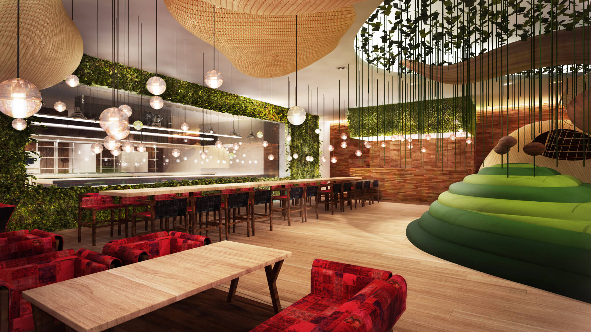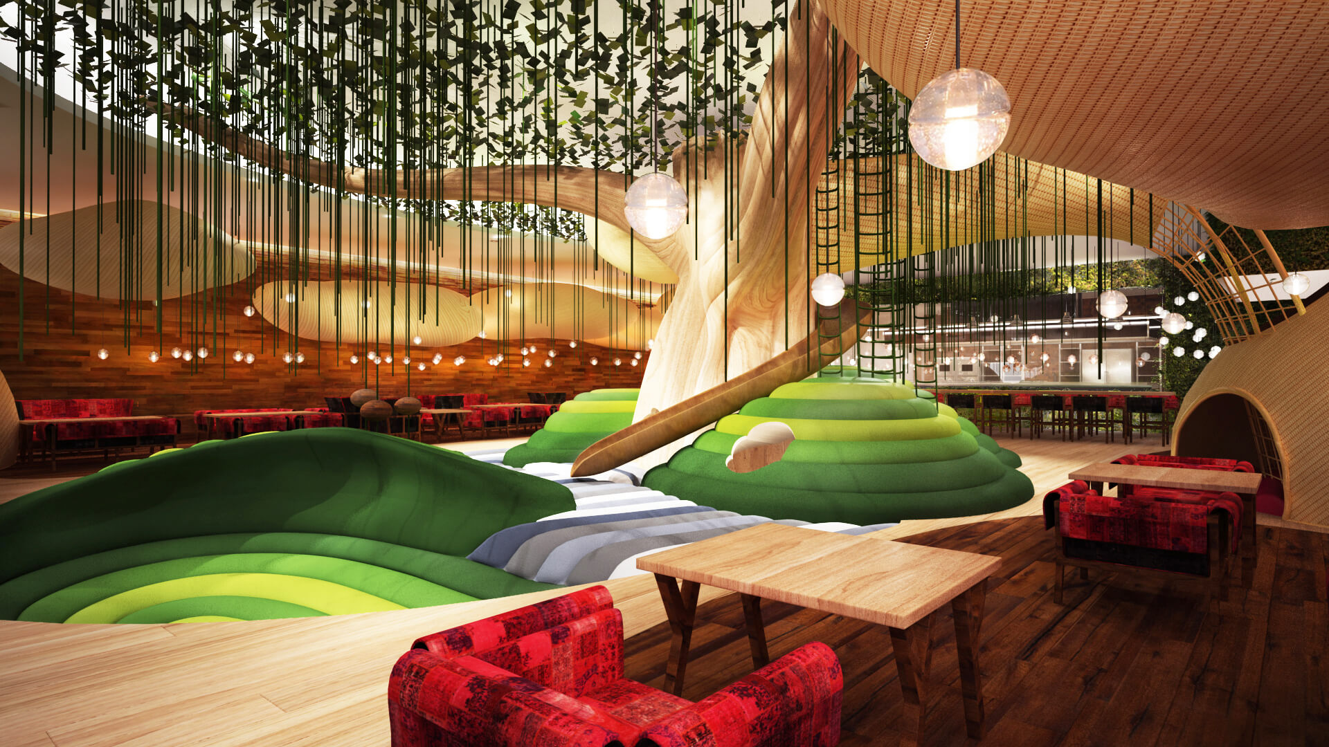 Restaurant bio à l’univers fantasque à Paris. C’est un environnement magique plein d’émerveillement, un univers stimulant et ludique avec plusieurs stations de jeu presque sorti d’un film d’animation. Ce qui est surprenant est cette impression de rentrer dans un autre monde, où ce qui se passe au plafond est aussi intéressant que ce qui existe au sol.