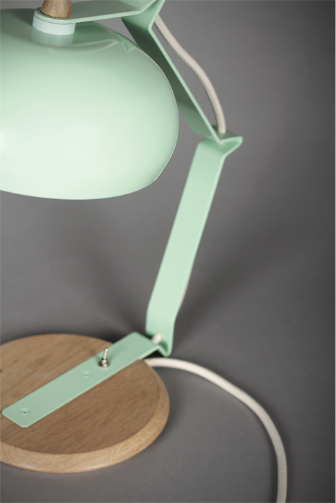 Son image rassurante et harmonieuse rend cette lampe parfaite pour la disposer soit sur un bureau ou sur une table de chevet. Sa couleur menthe à l’eau très tendance, lui confère un style vintage.