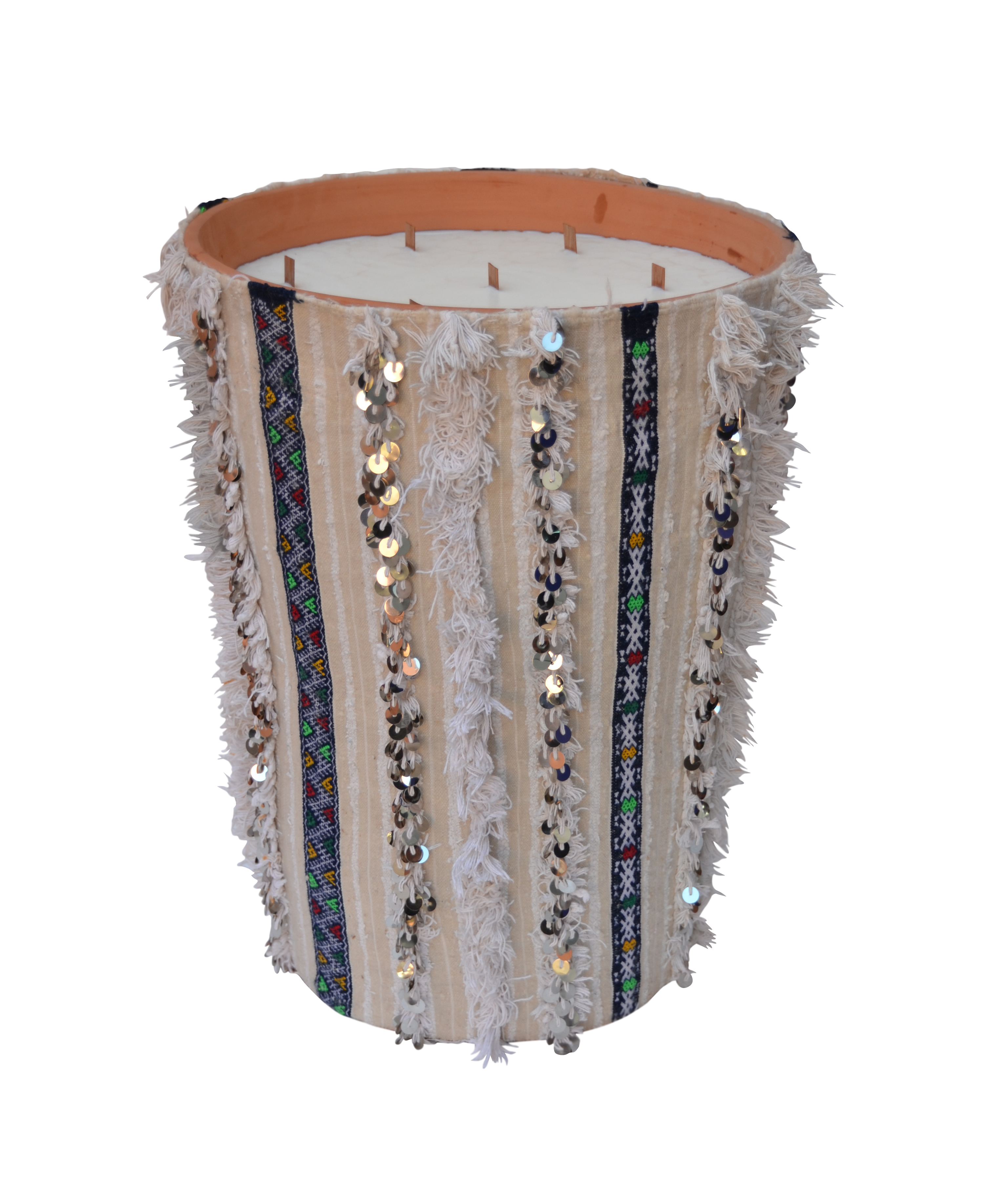Le design unique de Bahia, s’appuie sur le tapis berbère fabriqué à la main selon les mêmes traditions depuis des siècles. Issue de la nouvelle collection Berbère de Côté Bougie, fabriquée de manière artisanale, héritage d’un peuple, cette bougie moderne garde une pointe d’authenticité et un esprit ethnique.